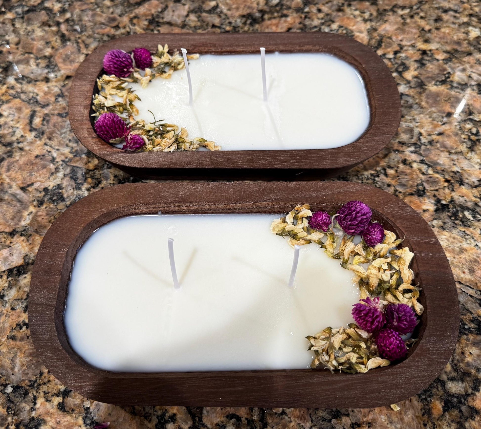 Two wick soy candle. 10oz in reusable wooden bowl. Scent: A Day at the Spa. Day at the Spa is a calming and balanced fragrance that combines notes of lemongrass and black currant with hints of patchouli and sugarcane. It's a great year-round fragrance that fits well in an aromatherapy line.
